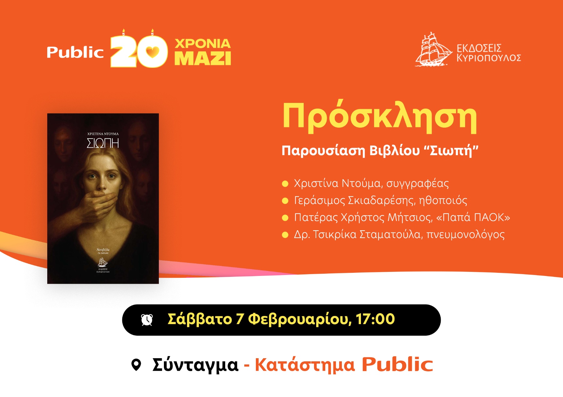 Εκδήλωση βιβλίου “Σιωπή” στα Public Συντάγματος, Σάββατο 7/2 στις 17:00