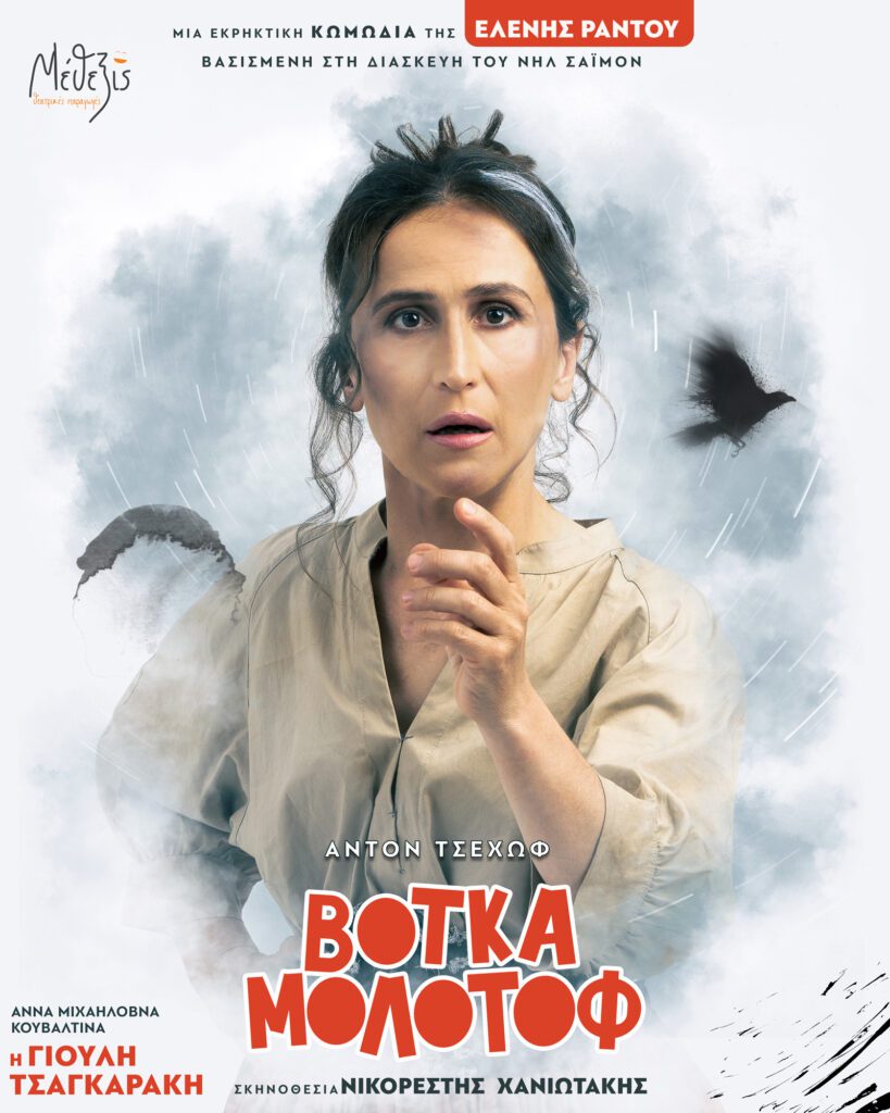 Η Ελένη Ράντου τιτλοφόρησε τη διασκευή της «Βότκα Μολότοφ», κλείνοντας το μάτι στους θεατές για τη θεατρική «έκρηξη» γέλιου και συγκίνησης που ετοιμάζονται να βιώσουν. Το κείμενό της διαθέτει γλωσσική αμεσότητα και χιουμοριστική σπιρτάδα. Οι τσεχοφικοί ήρωες, με όλα τους τα κουσούρια, τα λάθη, τους καημούς και τους πόθους τους, θα μοιραστούν μαζί μας το δάκρυ τους, το μελαγχολικό χαμόγελό τους και το λυτρωτικό γέλιο τους. Σε μια εποχή που ο διαφορετικός χαρακτήρας, η διαφορετική, από ιδεολογικά και εθνικά στερεότυπα, άποψη, ακόμα και το αντίθετο φύλλο ή η διαφορετική φυλή, όπως και η διαφορετική πολιτική ένταξη, αντιμετωπίζονται με μια ανθρωποφαγική σχεδόν διάθεση, με κηρύγματα μίσους και απαξίωσης, η αγάπη του Τσέχωφ για τον άνθρωπο, καθώς και το χιούμορ του μπορούν να αποδειχθούν καταλυτικά.