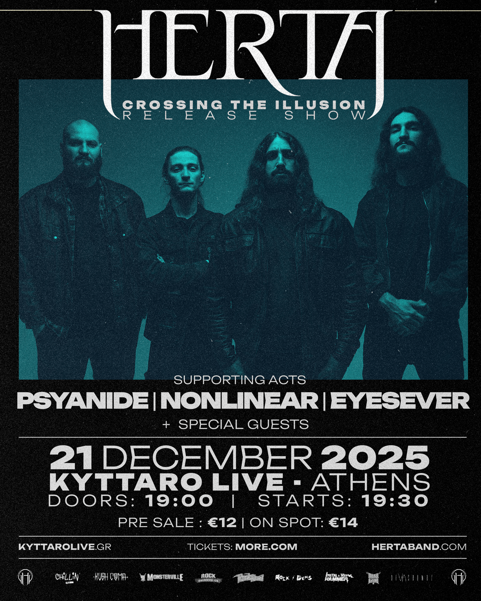 Το Σάββατο 21 Δεκεμβρίου 2025, η καρδιά της ελληνικής metal σκηνής θα χτυπήσει δυνατά στο ιστορικό Κύτταρο, σε μια βραδιά που υπόσχεται να μείνει χαραγμένη στη μνήμη όλων των οπαδών. Το live “CROSSING THE ILLUSION” φέρνει στη σκηνή τους Herta, συνοδευόμενους από τους Psyanide, Nonlinear και Eyesever, για ένα show που θα συνδυάζει ενέργεια, πάθος και μοναδικές συνεργασίες.