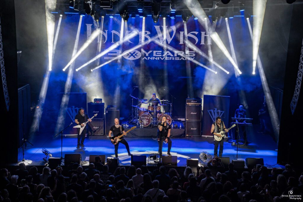 To drum kit και ο βαρύς εξοπλισμός δεν άλλαξαν κατά τη διάρκεια της βραδιάς, έτσι οι Elysion είχα όλο το stage και το φωτισμό στη διάθεσή τους. Για τον ίδιο λόγο δεν άργησαν να ανέβουν στη σκηνή οι Innerwish λίγο μετά τις εννιά. Ούτε pit, ούτε νταβαντούρι, το κοινό απόλαυσε κοντά δυο ώρες, δίκασης, κιθαριστικών δισολιών, Accept-iκών riff, και τον ακούραστο Γιώργο Εικοσιπεντάκη, τη φωνή της μπάντας να αποδίδει κομματάρες από όλες τις περιόδους του σχήματος. Το κιθαριστικό δίδυμο Θύμιος Κρίκος – Μανώλης Τσίγκος έχει τελειοποιήσει τον ήχο του, μια συνεργία που κρατάει από την ίδρυση της μπάντας. Ο Φραγκίσκος “Franki” Σαμοΐλης στα ντραμς οδηγεί την μπάντα στο ταξίδι τριάντα ετών, το μπάσο του Αντώνη Μαζαράκη υποδειγματικό, ενώ τα πλήκτρα του Γιώργου Γεωργίου χαρίζουν στουντιακή πληρότητα στον ήχο. Απ’ το κοινό βγήκε η ατάκα της βραδιάς “Primal Fear”. Ναι, τόσο υποδειγματικό ήταν το performance των Innerwish, και να μην ήξερες κάποια τραγούδια τα μάθαινες εκεί. Με χαρά είδαμε γονείς να φέρνουν τα παιδάκια τους σε αυτή την μουσική επέτειο που συγκίνησε εξίσου κοινό και συγκρότημα, επιβεβαιώνοντας πως οι Innewish είναι η μπάντα όλων μας. Ανυπομονούμε για καινούργια κομμάτια και νέο δίσκο.