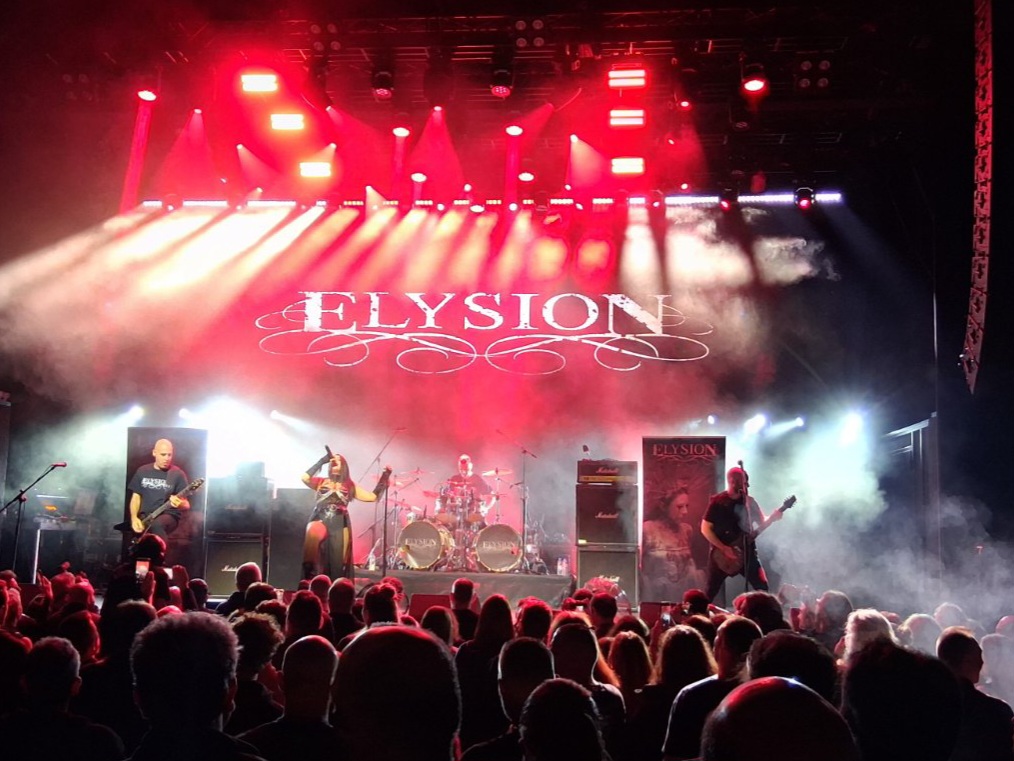 Σε αυτή την υποδειγματική διοργάνωση κοινό και μπάντες ήταν στην ώρα τους. Οκτώ η ώρα και οι Elysion βρίσκονταν στην σκηνή. Για σαρανταπέντε λεπτά έπαιξαν κομμάτια από τους τρεις δίσκους τους, εξαιρετικός ήχος που έβγαζε μπροστά τα κιθαριστικά σόλο, στιβαρά τύμπανα χωρίς βαβούρα και μια Χριστιάνα σε τρελή φόρμα. Οι ψιλές της-πραγματικά ψιλές- με ατάκα, ακούραστη, καλά καλά δεν έχει τελειώσει το όγδοο κομμάτι Never Forever, χωρίς να πάρει ανάσα ευχαριστεί το κοινό και καπάκι Killing My Dreams. Οι Elysion από τα demo τους κι όλας ήξεραν ακριβώς τι ήθελαν να παίξουν, συνεργάστηκαν με κορυφαίους του είδους παραγωγούς και έγραψαν ορισμένα από τα πιο πιασάρικα και μεστά κομμάτια του ιδιώματος και του μελωδικού metal γενικότερα. Αυτός ο επαγγελματισμός και συνάμα αγάπη για το αντικείμενό τους έλαμψε το Σάββατο στο Floyd κι ας απουσίαζαν μπάσο και μπασίστας.